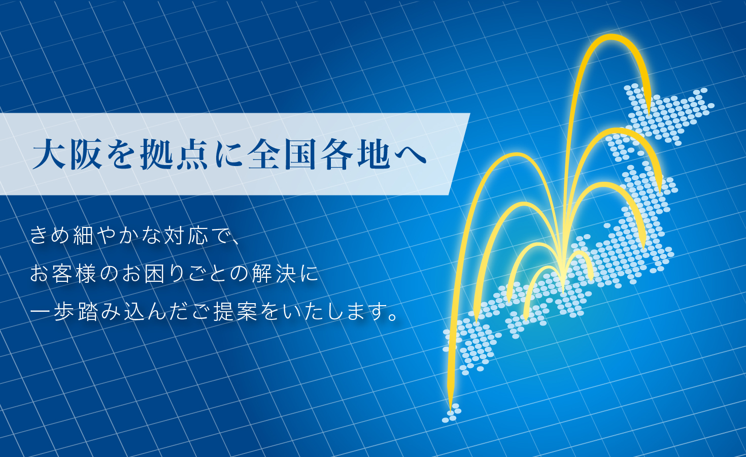 大阪を拠点に全国各地へ。お客様の悩みに一歩踏み込んでご提案いたします。